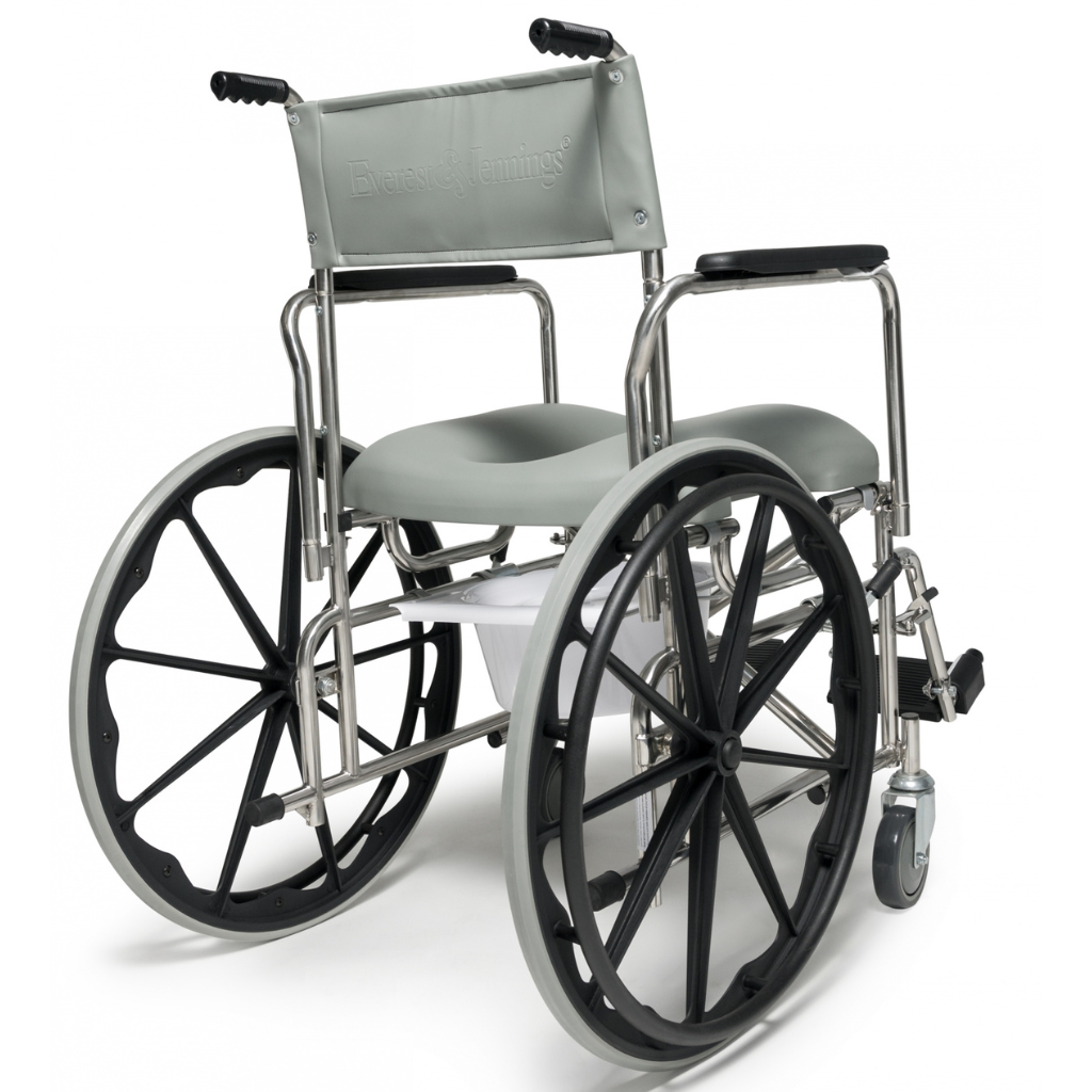 E&J Folding Rehab Shower Commode Chair – Premium Self-Propelled Wheelchair with Commode Function