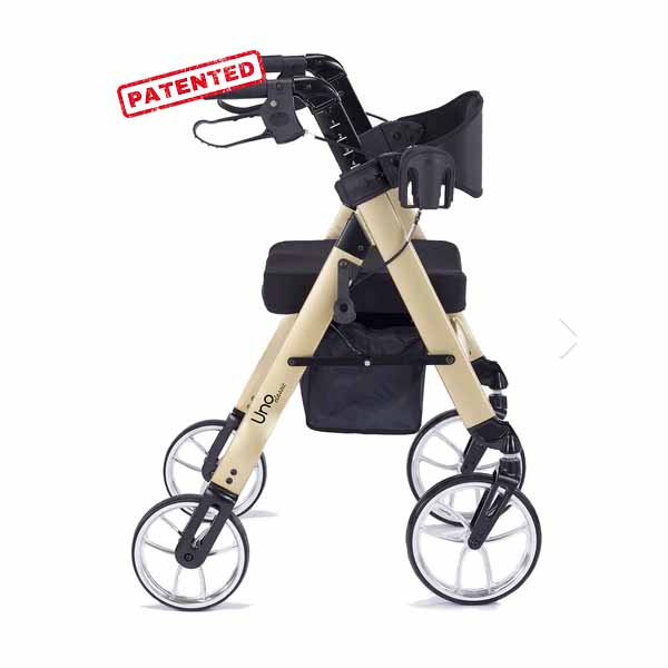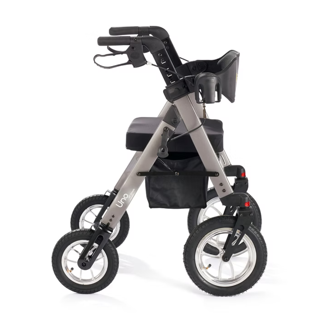 | UNO All Terrain Rollator | 300 lbs | 28 lbs | 16″ × 13.5″ | 22″ | 34″ – 39.5″ | 12″ front / 10″ rear pneumatic | Reinforced Aluminum | Rugged outdoor use with orthopedic seat for long walks & adventures. |