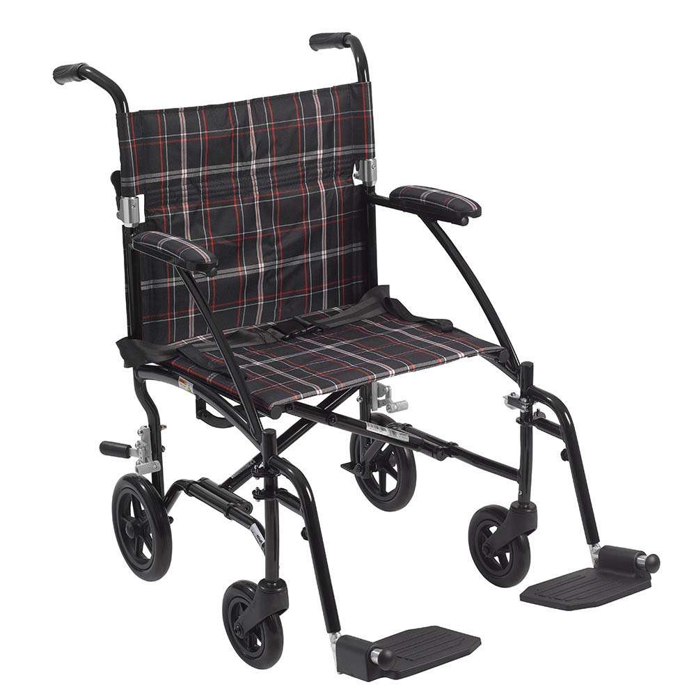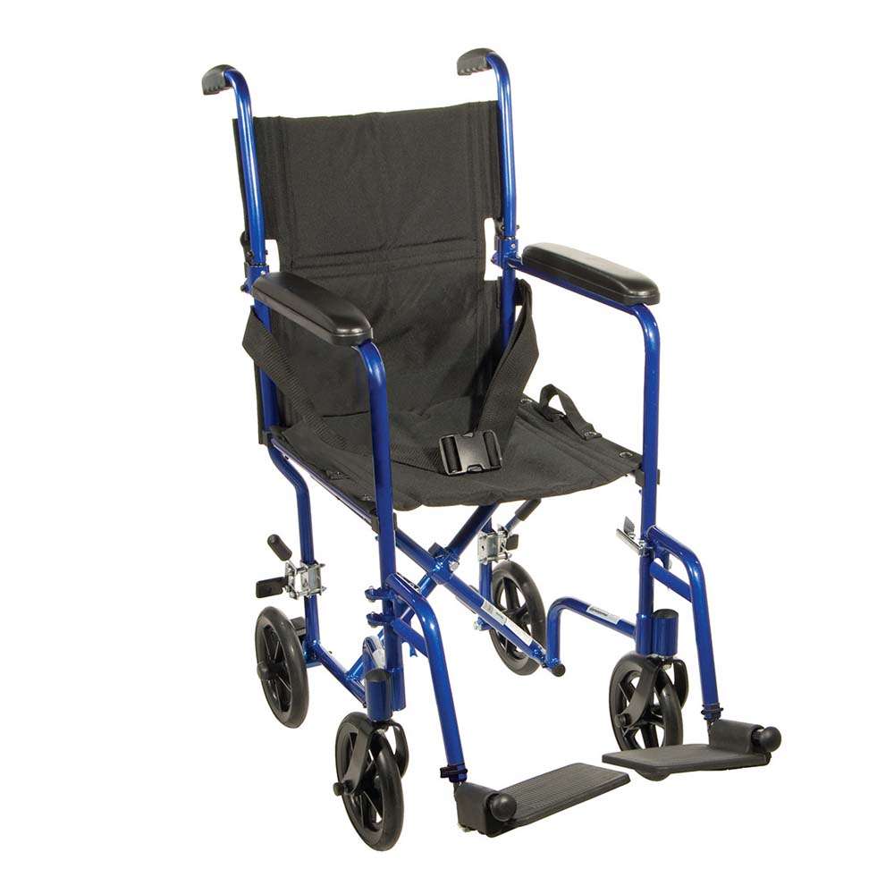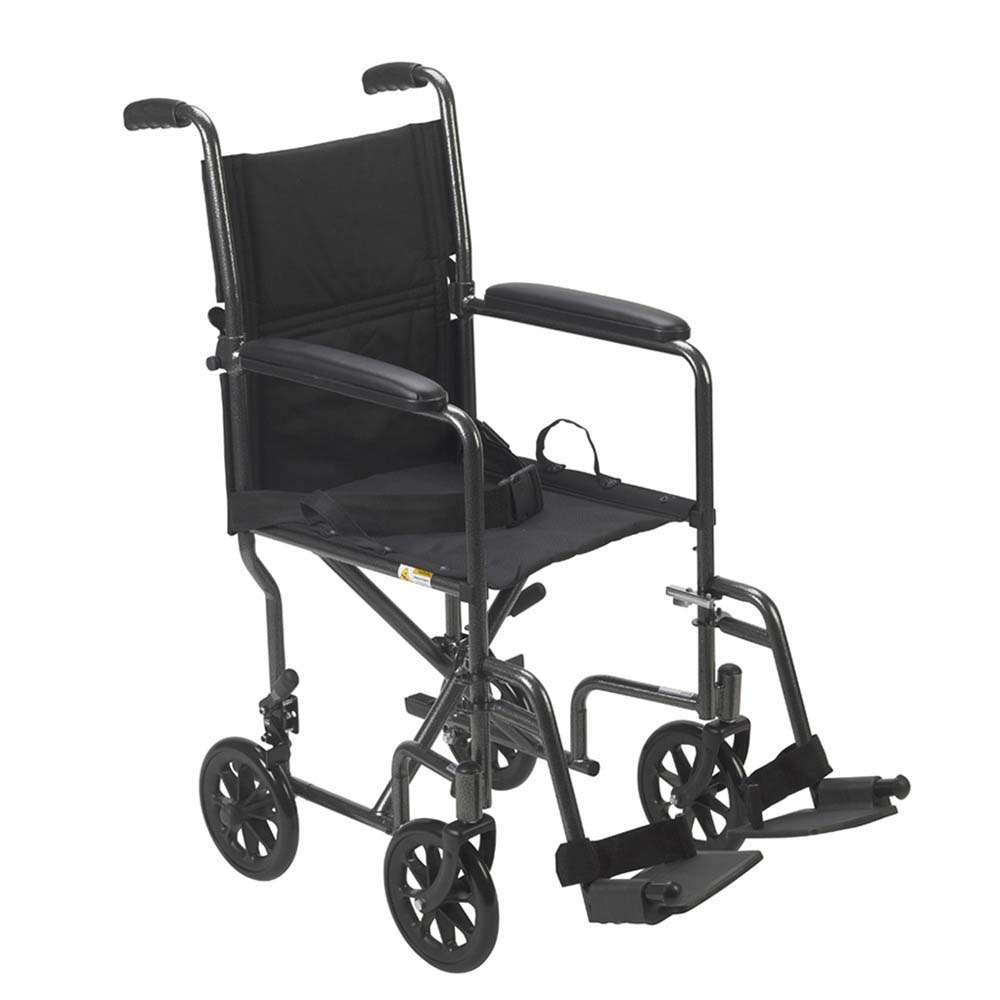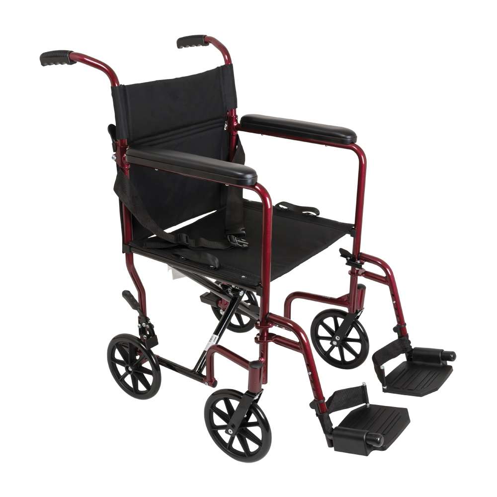 Those needing lightweight and compact transport can consider the McKesson Lightweight Transport Chair, which blends a strong aluminum frame with padded armrests and a secure seatbelt.