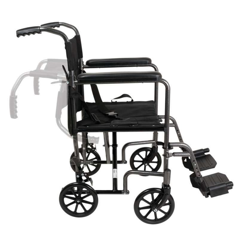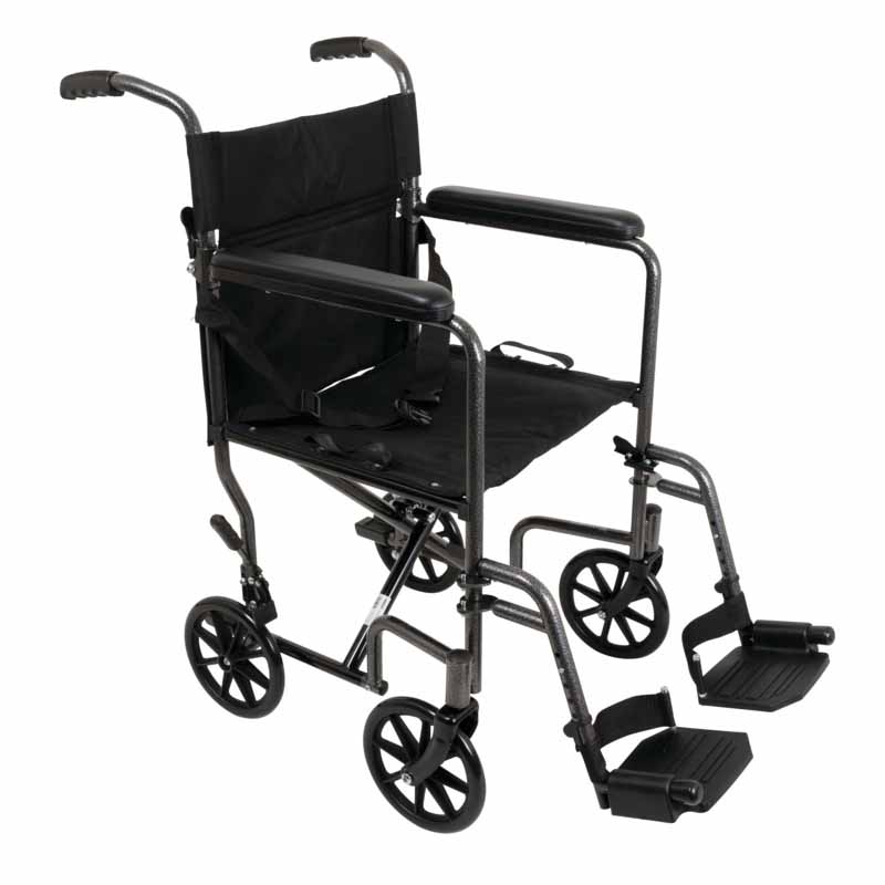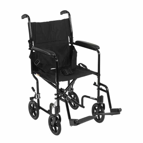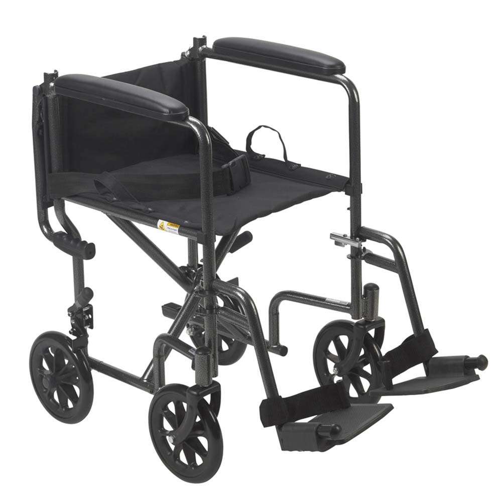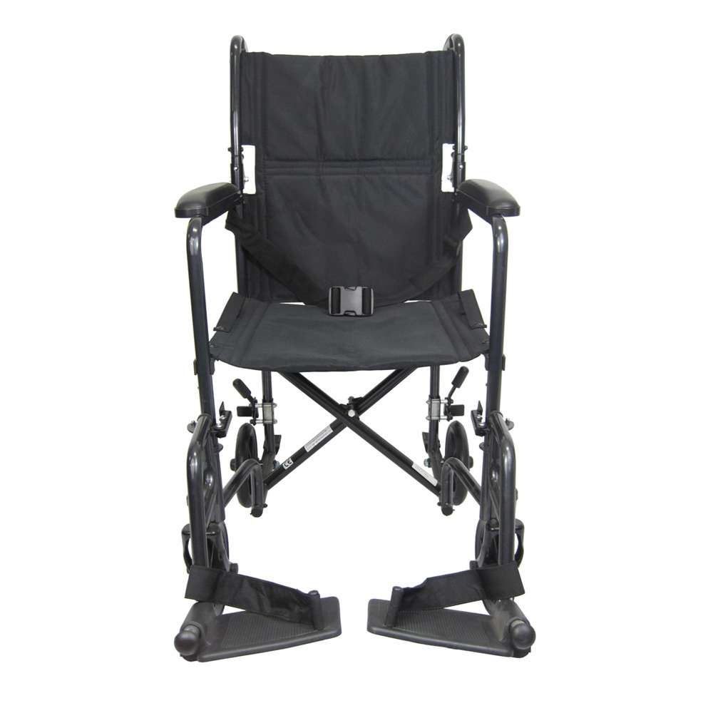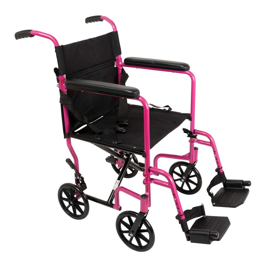 Those needing lightweight and compact transport can consider the McKesson Lightweight Transport Chair, which blends a strong aluminum frame with padded armrests and a secure seatbelt.