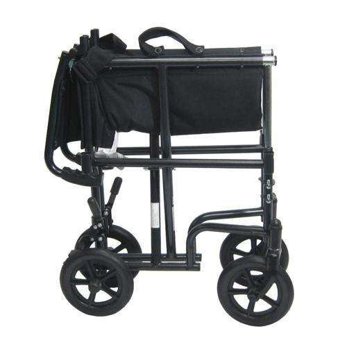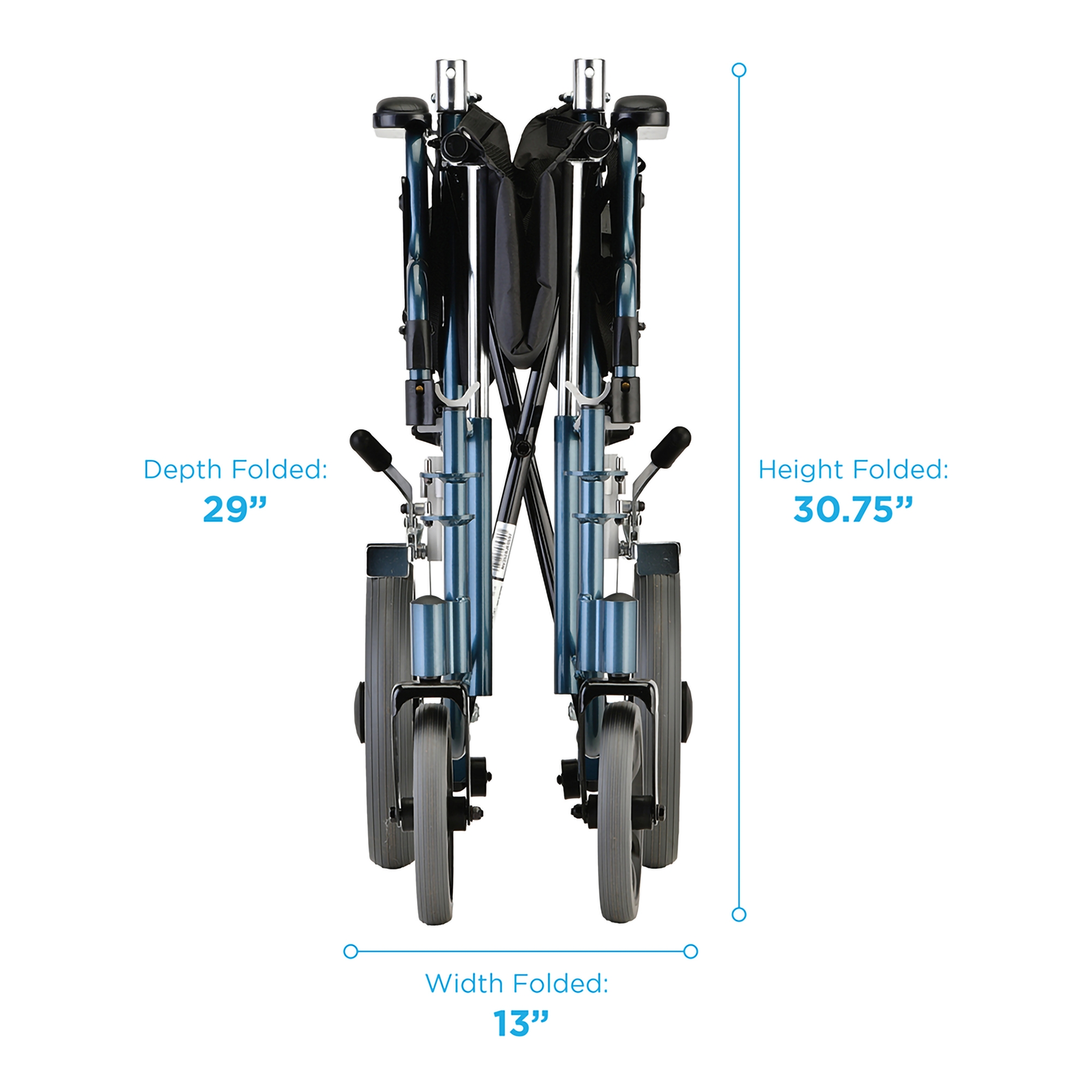 A: Most transfer chairs we offer fold compactly and weigh between 18 and 33 pounds, making them easy to lift, store, and transport. For example, the Astra Aluminum Transfer Wheelchair folds flat and weighs only 19 lbs, ideal for caregivers on the go.