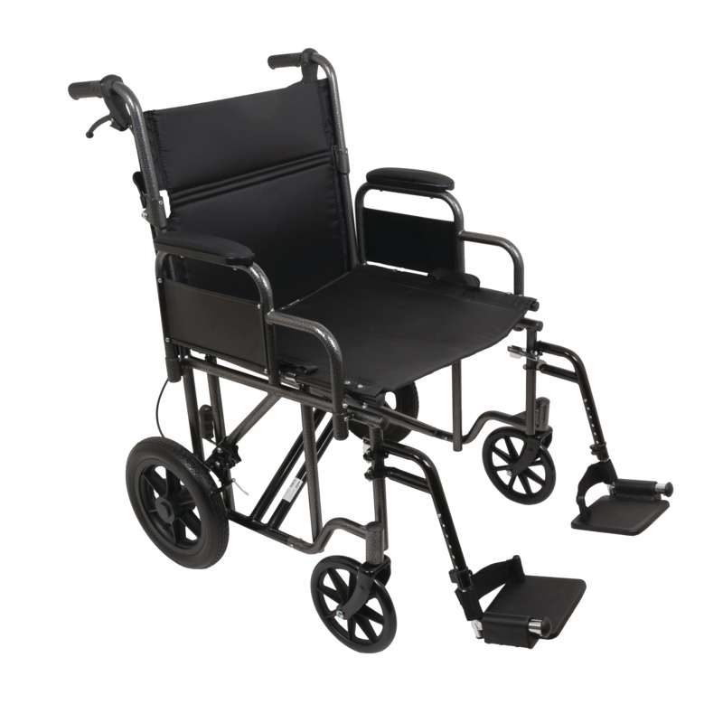 | Karman T-900 Bariatric Transport | 20, 22 | Padded detachable desk-length | Swing-away footrests | 450 | 52 | Heavy-duty steel frame with high weight capacity | Bariatric & heavy-duty mobility | View Product |