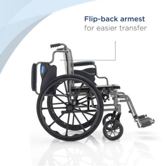 | McKesson Cruiser III Lightweight | 18, 20 | Flip-back padded desk arms | Swing-away elevating leg rests | 300 | 35 | Dual axle seat height & elevating leg rests | Users needing adjustability & higher weight capacity | View Product |
