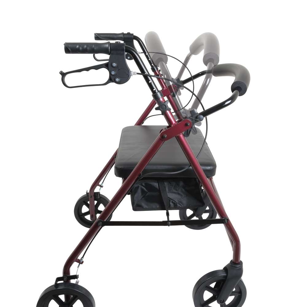 ✔ Height Adjustable Handles – With a quick-adjust knob, this 4 wheel rollator walker allows handle heights from 33” to 38”, promoting proper posture and comfort for users of various heights.