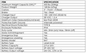 - Audible and Visual Alert if exceeds weight capacity of 450 lbs