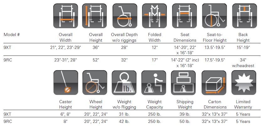 • Dual-axle allows adjustable seat-to-floor height from Adult (19.5”) to Hemi (17.5”)