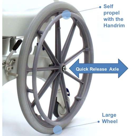 The comfortable seat and backrest ensure a secure and relaxed bathing experience, while the detachable commode pan simplifies waste management. With its robust construction and thoughtful design, the Aquatec Ocean Ergo XL Self Propel Shower Commode offers a reliable solution that promotes independence and dignity in personal care routines.