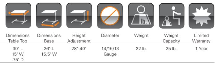 • Light, upward touch on handle allows tables to elevate freely and securely