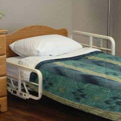 The Deluxe Assist Handle is designed for this bed. This bed rail has multiple functions. First, it serves as an assist handle to aid in getting in or out of bed. It may also be used by the patient as a handhold for assisting in turning over in bed. Second, it may serve as a short safety bed rail, particularly when placed near the center of the bed. Lastly, the Pendant Holder can be fastened and integrated to this Assist Handle to keep the pendant control handy and accessible for the patient. The design of this assist device minimizes limb entanglement or entrapment. The Assist Handle is easy to install and offers quick removal without any tools. Handholds are ergonomically designed and are sturdy to provide patient support. The handles are soft, offering a good, comfortable grip. This handle meets IEC 60601-2-38 requirements in all positions.