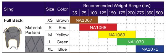 | Size | Color | Recommended Patient Weight | SKU |