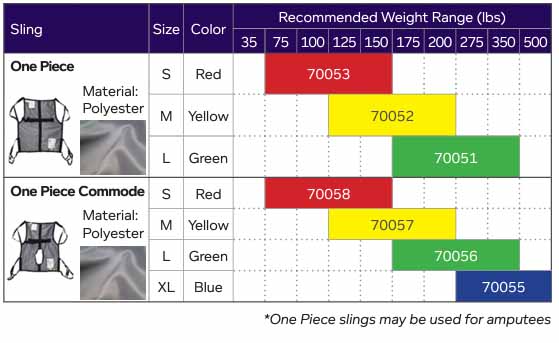 | Sling Type | Size | Color | Weight Capacity | SKU |