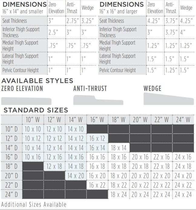 The M2 offers advanced positioning support with its deep lateral and medial leg contours as well as tapered leg adductors for pelvic stability. Constructed with dual density foam, a molded foam base, and a QuadraGel pack to redistribute pressure. Available in Zero Elevation or Anti-Thrust.