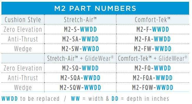 - ANTI-THRUST – The M2 Anti-Thrust cushion provides anterior pelvic build-up to prevent forward migration.