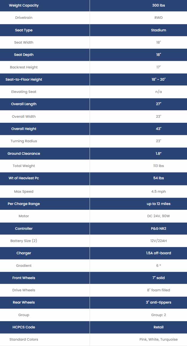 - Turning radius of 23-inches for easy maneuverability in tight spaces