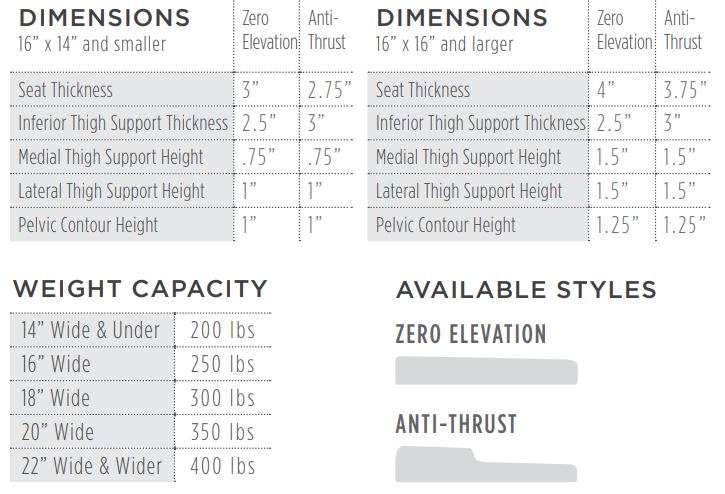 - Tapered leg adductors increase in width near the back of the cushion to give support to the greater trochanters.